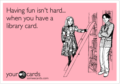 In other news, there are still so many ways you can use your library during this transition. We have books, movies, CDs, magazines, newspapers, audiobooks, Ebooks, Eaudiobooks, databases, out-of-system requests, book clubs… I could go on. And, with your library card, all of this awesomeness doesn’t cost you a cent. We also offer wireless internet and wireless printing. Our computer lab is in a temporary location, but you can still use your library card to surf the web and print out documents for a nominal fee. The library has a scanner, fax machine, and a gaggle of professional librarians to assist you with your research, education, or entertainment needs. Come and hang out with us!