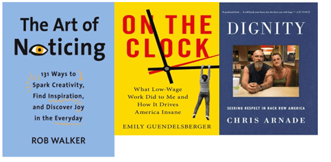 The unifying theme of these new titles is they were each by writers who shed light on things right in front of us and might not notice. In some cases, we might not want to notice as I admit when I read Emily Guendelsberger’s account of working at Amazon. Since I love, love, love, knowing my purchase will arrive ASAP, I really didn’t want to know the human cost. In a climate charged with stressful and even dangerous events, Rob Walker’s The Art of Noticing is a welcome reprieve from all the news and social media noise that bombards us. Chris Arnade’s Dignity is a deep examination of the reality and strong-arm grip of addiction and how it divides groups of people in a way that no other disease does.