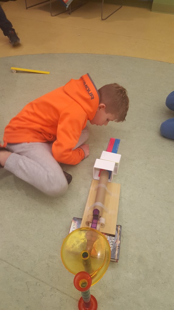2. Start your machine at the end. Rube Goldberg machines have many steps that need to work together to complete a task. It is best to test each step as you build the machine. Several groups had to take apart the whole machine because the last step didn’t work.