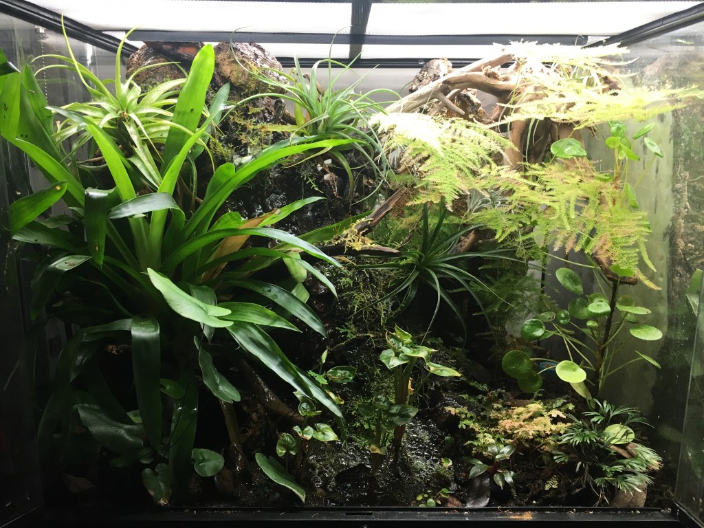 Here’s a tank that’s been growing in for a few months, but it is a good representation of how Tanner and I build new tanks and enclosures for animals. This one specifically is for mourning geckos. Mourning geckos are interesting little guys (ladies) in that they’re parthenogetic, meaning males are not needed to reproduce. The females essentially clone themselves, which is super cool.