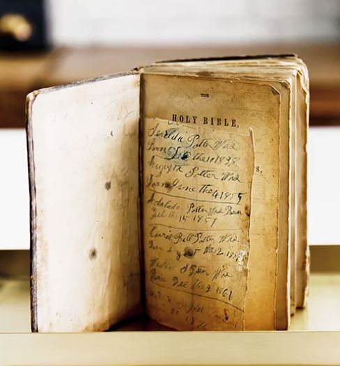 In the early 1800’s many young women would keep friendship albums filled with writings, clipping of hair, and ephemera of the time. Many families used their bible as way to preserve their history. Noting dates of marriages, births, and deaths. This was also a time when calling card albums were very fashionable. These were albums filled with the cards friends would send to one another with dates for visiting one another. Their pages were filled with beautiful social cards.