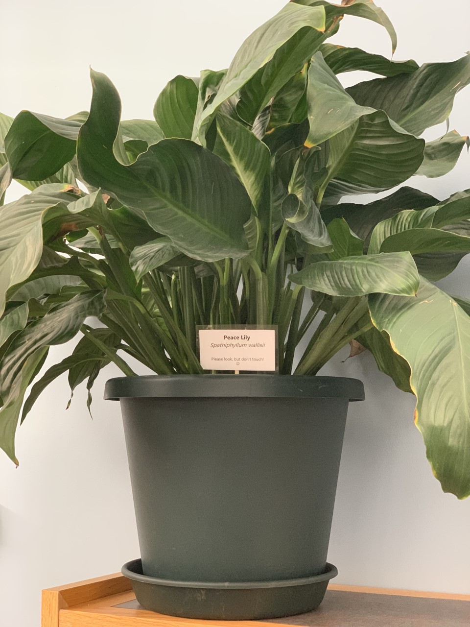 Upstairs we have the Peace Lily, or Spathiphyllum wallisii. Ours resides on top of the Adult Graphic Novels.