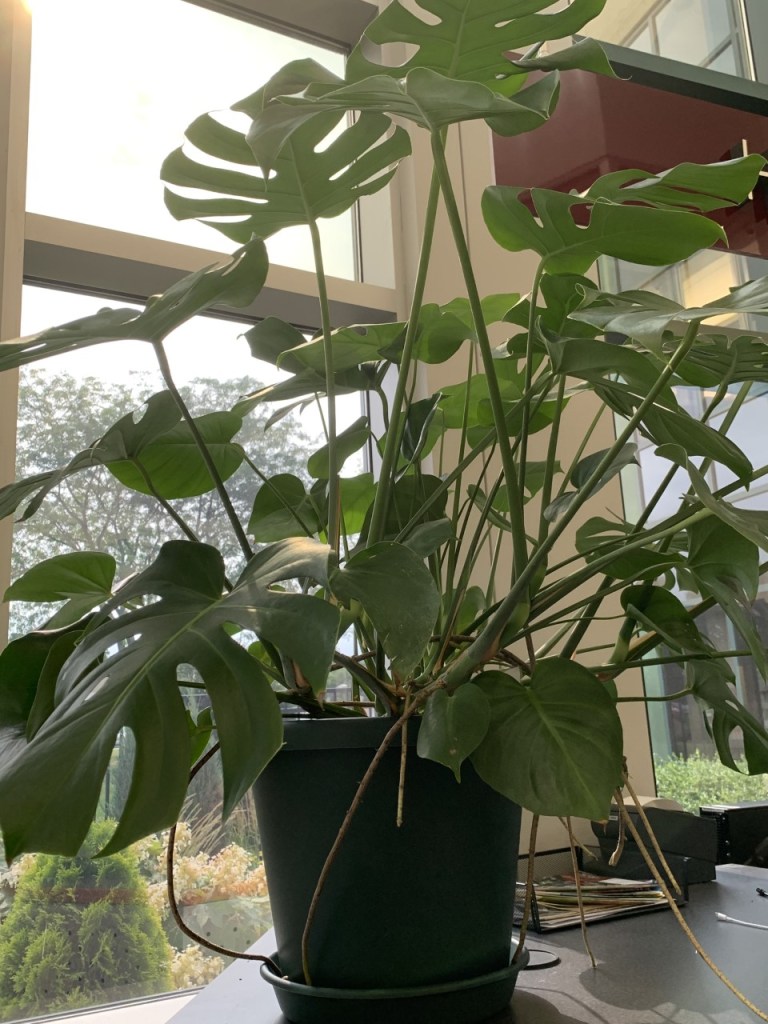 One of the most notable plants here at OFPL is the Swiss Cheese Plant, or the Monstera deliciosa.