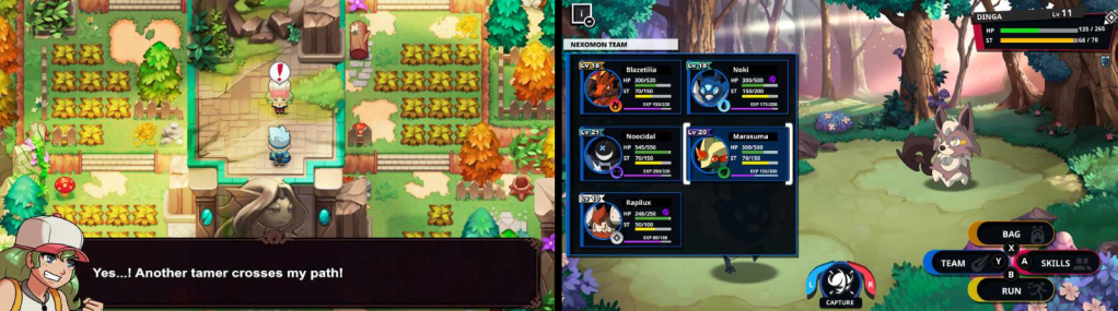 Nexomon Extinction is a Pokémon knockoff. It has the same concept with a focus on capturing and “taming” monsters. But it also has a sense of humor, often breaking the fourth wall and poking fun of itself and the games it imitates. Since the game is made by a small studio, it lacks the refinement and scale of a Pokémon game, but still delivers satisfying content. The game is rated E10+ and has nothing particularly objectionable but I think an older audience is more likely to appreciate its humor.