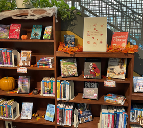 Case in point, the lead display in the library this month which Stephanie designed and implemented: Cozy Mysteries and Cookbooks. Perfect reading (and eating) now that the weather has shifted.