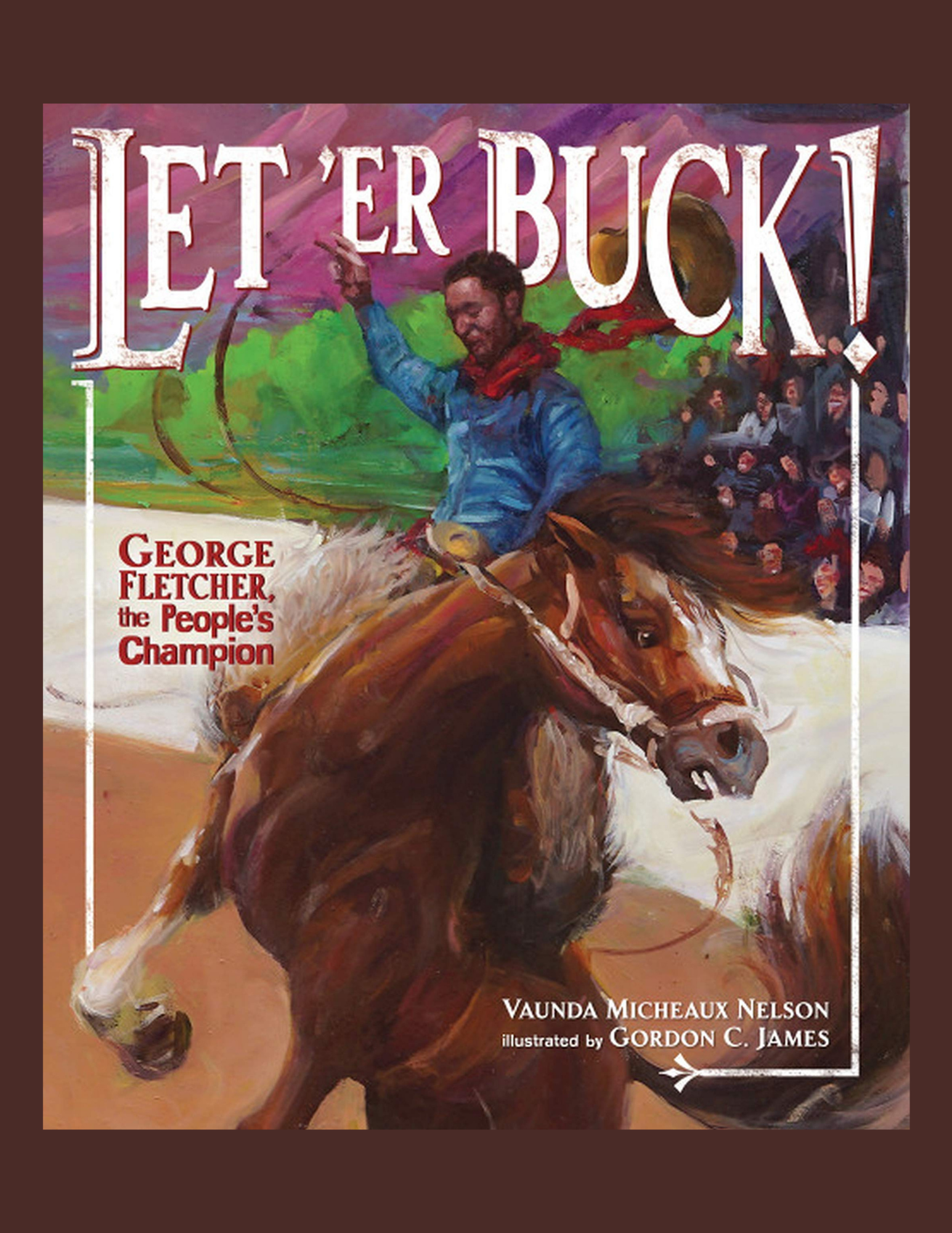 “The Old West may be gone, but memories and legend live on. Ask any cowpoke and, boy howdy, he’ll tell some tales. Ask a cowboy from Umatilla County, and he’ll for sure come around to the story of the Saddle Bronc Championship at the 1911 Pendleton Round-Up – and the bronc buster named George Fletcher.” These are the first words in Let ‘Er Buck by Vaunda Micheaux Nelson. George Fletcher grew up in Oregon and learned how to ride bucking animals at a very young age from his Native American neighbors, but because he was black, he faced many obstacles when competing in rodeos. George didn’t win the Championship that day at Pendleton, but his skill and hard work won the hearts of the crowd, and he earned the respect that he deserved. This is a story of determination, justice, and resilience that resonates as much today as it did in the early 1900’s America.
