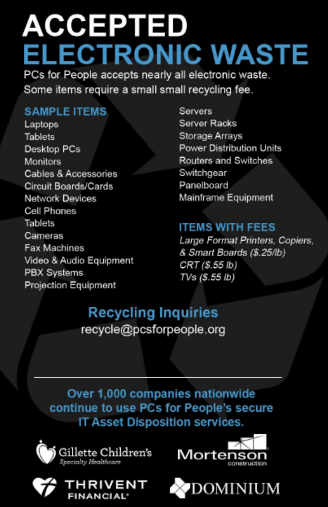 Started in 1998, PCs for People is a non-profit organization that provides computers, low-cost internet and computer repair to low-income families.