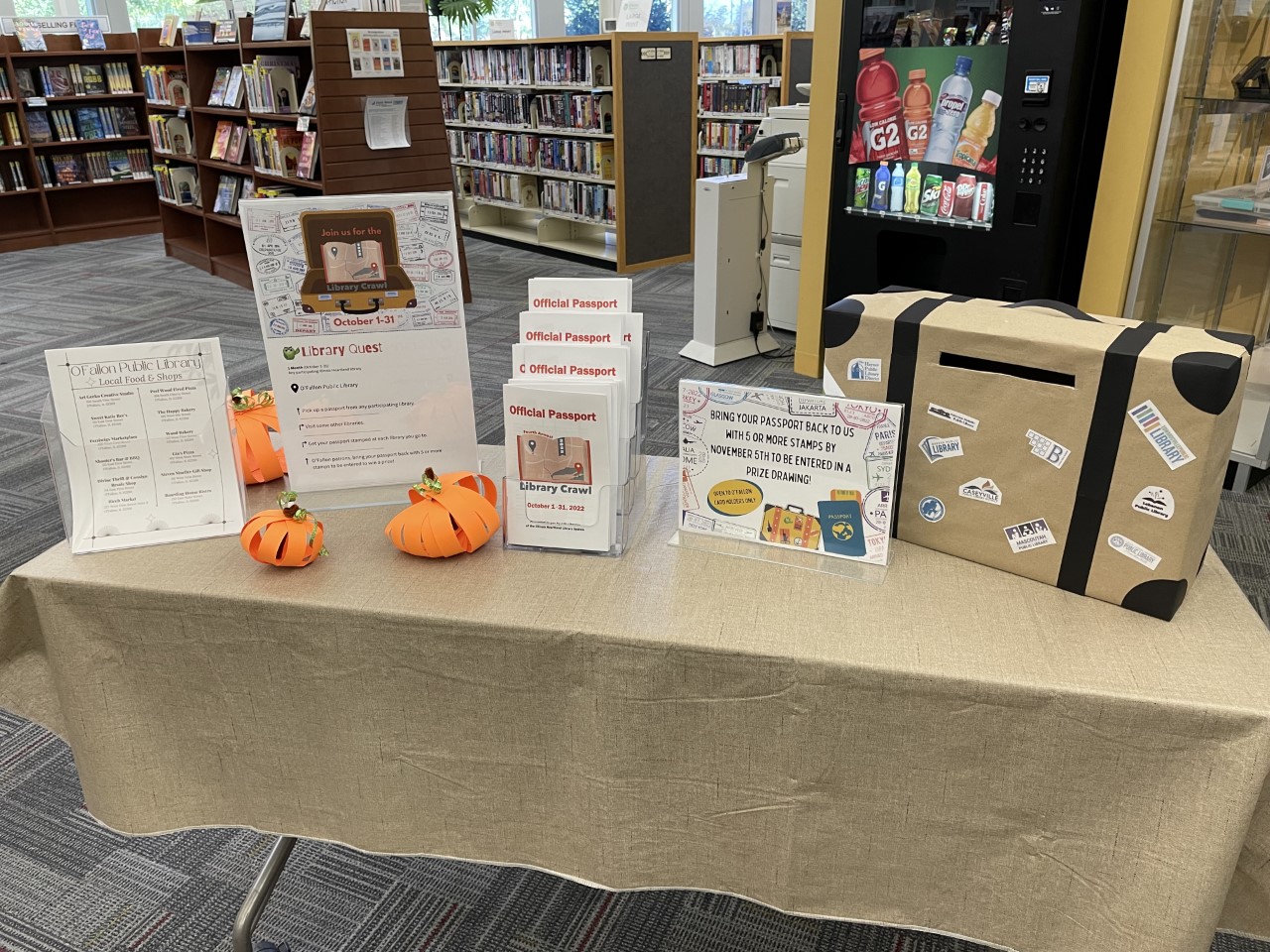 During the month of October, there will be Library Crawl Passports at the main desk and on display at O’Fallon Public Library. Visit the main desk at any of the participating libraries to get a stamp on your passport.