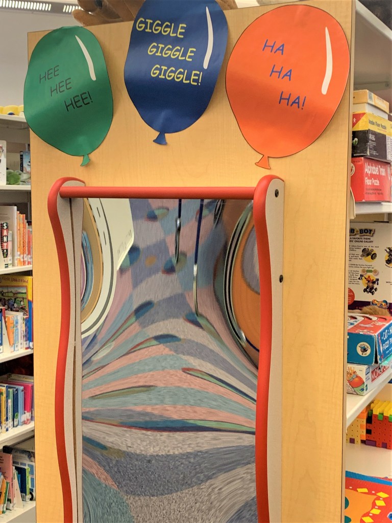 On to the Freeburg Public Library. The first thing we noticed was this library is located right across the street from the local high school. What an awesome resource for the students! Their children’s department was so fun! The space was set up for maximum engagement. There was a fun house mirror, tons of toys and puzzles, and a gorgeous stain glass window.