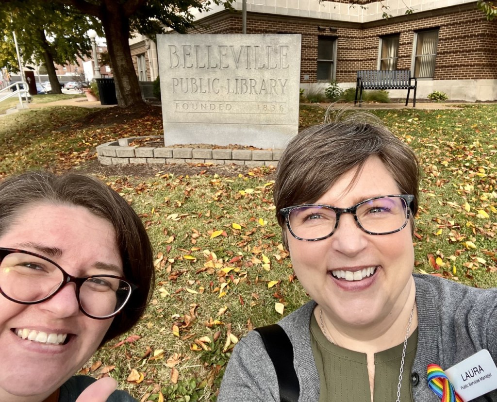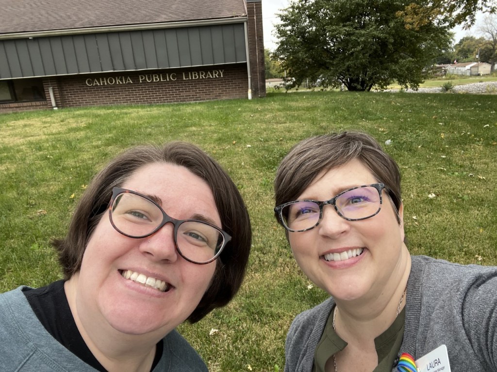 The first day Laura, OFPL Public Services Manager, and Ashley, OFPL Circulation Assistant went to Cahokia, Daugherty Public Library in Dupo, Columbia, Millstadt, and Belleville’s Main Branch.