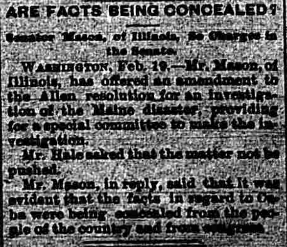 Washington, Feb 19—Mr. Mason, of Illinois, has offered an amendment to the Allen resolution for an investigation of the Maine disaster, providing for a special committee to make the investigation.