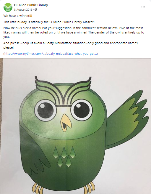 August 8th, 2016 is the day we introduced Owlfred! You have probably seen him sitting around the library, running around on TikTok, and all across library materials in person!